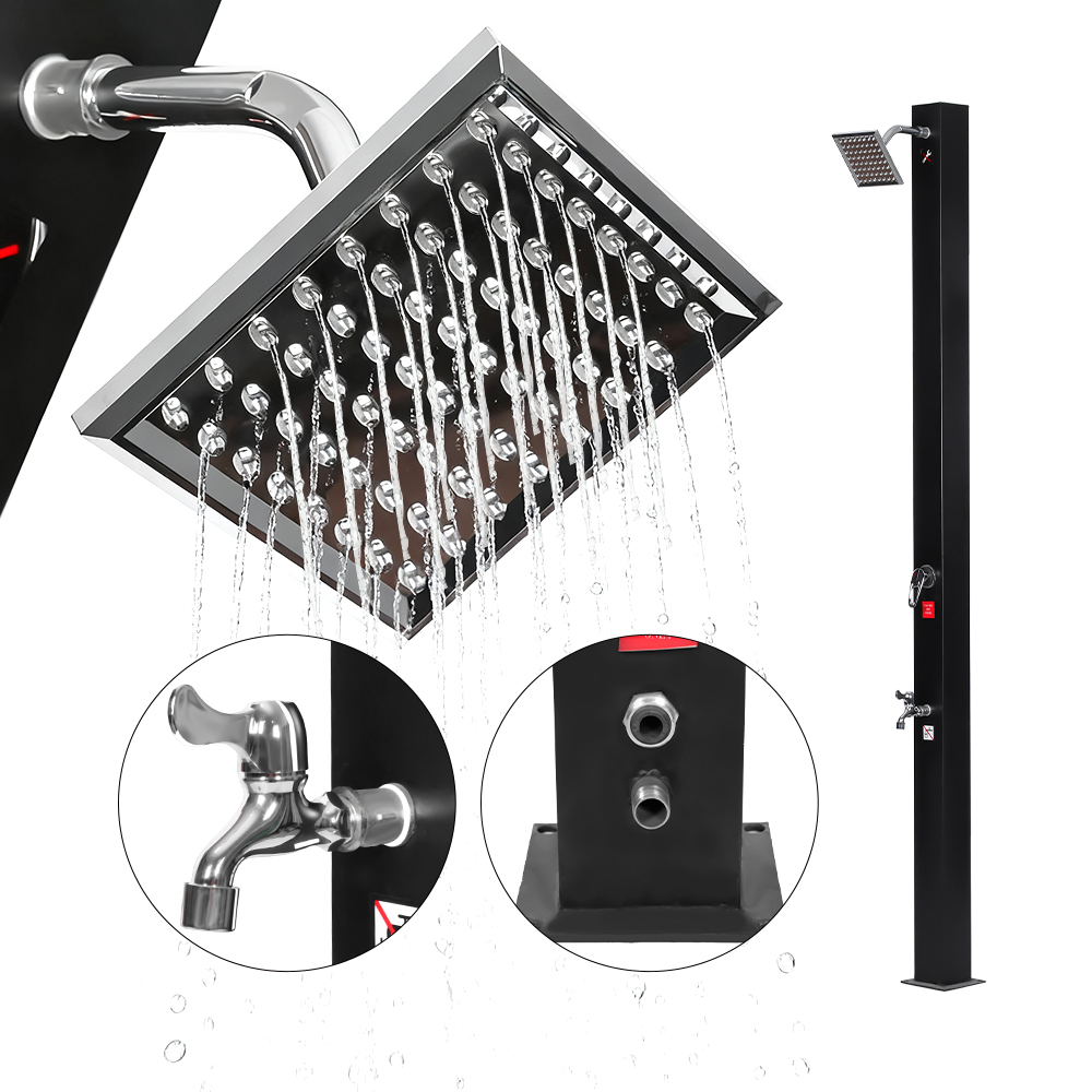 Esta LY18L08-SS Ducha Solar Integrada Ajustable con Protección UV está cuidadosamente diseñada tanto para brindar comodidad como practicidad. Su cabezal de ducha de lluvia de tamaño generoso, equipado con una rótula integrada, puede girar hasta 180°, lo que le permite ajustar el ángulo para una experiencia de ducha agradable y refrescante. Fabricada con plástico resistente a los rayos UV, la unidad es duradera y se puede desmontar rápidamente para facilitar su transporte o almacenamiento cuando no está en uso. La base resistente, hecha de acero inoxidable, ABS, cobre y otros materiales confiables, garantiza una configuración segura y estable incluso en diversas superficies exteriores. Usar la ducha es sencillo —simplemente llene el tubo de la ducha con una manguera de jardín estándar, deje que el sol caliente el agua de forma natural y luego use el grifo integrado para ajustar la temperatura a su preferencia, creando una experiencia de ducha al aire libre conveniente y agradable.