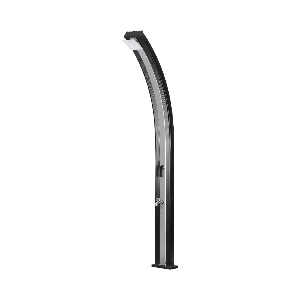 Esta LY30L01 Ducha Solar Exterior para Piscina de Aluminio Curvado cuenta con un tubo de ducha de aluminio de 30 litros, que proporciona abundante agua para una experiencia de ducha cómoda y agradable, ya sea en el jardín, junto a la piscina o en otro lugar. El grifo mezclador de una sola palanca permite un ajuste rápido y sencillo de la temperatura del agua, lo que le permite configurar fácilmente la temperatura ideal a su gusto, mejorando la experiencia general del usuario. El tubo de ducha de aluminio no solo proporciona una amplia capacidad sino que también ofrece una excelente durabilidad y conductividad térmica, lo que hace que la ducha solar para piscinas al aire libre doblada de aluminio LY30L01 sea más eficiente y conveniente.