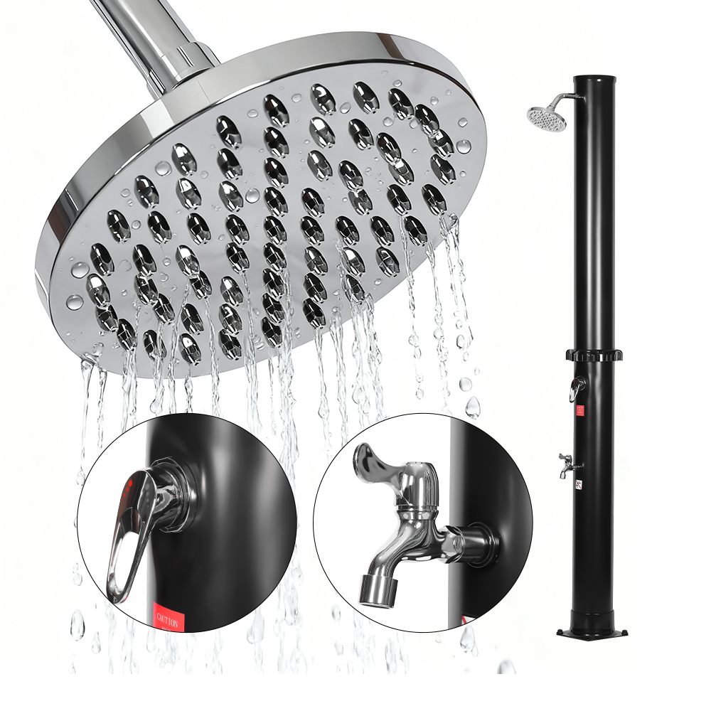Esta LY35L01 Ducha Solar Exterior para Jardín con Tubo de Gran Capacidad está diseñada para uso familiar al aire libre y cuenta con un tubo de ducha de tamaño generoso que puede calentar agua a alrededor de 60 °C bajo la luz solar intensa sin requerir electricidad. Simplemente conecte una manguera de jardín estándar para llenar el tubo de la ducha y todos podrán disfrutar de una refrescante ducha en el jardín, junto a la piscina o en un campamento. Para mayor comodidad, incluye una bandeja de metal incorporada para mantener el gel de ducha u otros artículos pequeños a su alcance, mientras que un orificio de drenaje en la parte inferior garantiza un flujo de agua suave y evita que el agua se quede estancada. Cuando no está en uso, la ducha se puede desmontar fácilmente para un almacenamiento compacto, lo que la hace práctica para uso estacional o transporte a diferentes lugares.