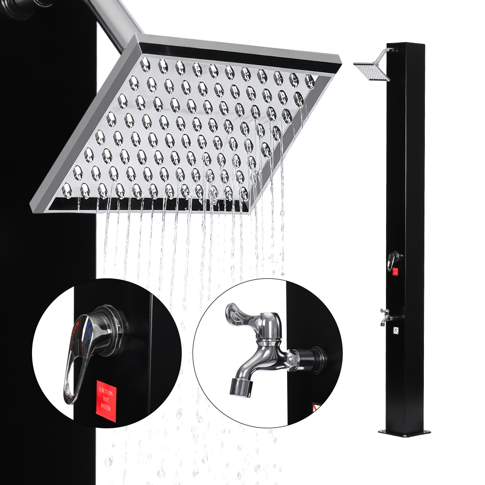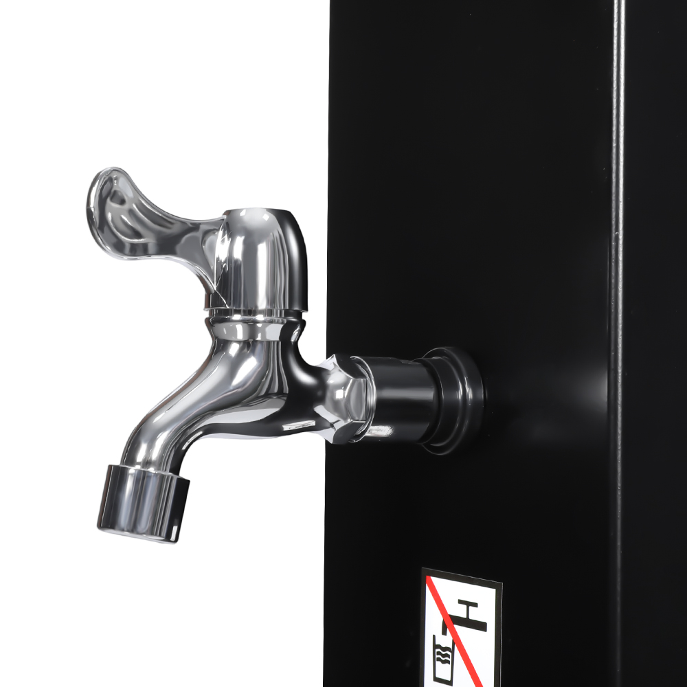 Esta ducha solar exterior de alta capacidad LY35L04-SS está diseñada para brindar una experiencia de baño al aire libre cómoda y conveniente aprovechando la energía de la luz solar para calentar agua hasta aproximadamente 60 °C, eliminando la necesidad de electricidad. Llenar el tubo de la ducha es sencillo —simplemente conecte una manguera de jardín estándar y la ducha estará lista para usar. Para mayor comodidad, un estante de metal incorporado mantiene los elementos esenciales de la ducha, como gel o champú, al alcance de la mano, mientras que un orificio de drenaje cuidadosamente colocado en la parte inferior garantiza una eliminación rápida y eficiente del agua, evitando que se quede estancada. Toda la unidad se ensambla atornillando de forma segura las piezas, lo que garantiza una estructura estable y, para un funcionamiento seguro en entornos exteriores, se requiere un anclaje adecuado al suelo. Para que la instalación y el uso sean sencillos, se incluyen instrucciones multilingües completas, lo que lo hace accesible para usuarios de varias regiones.