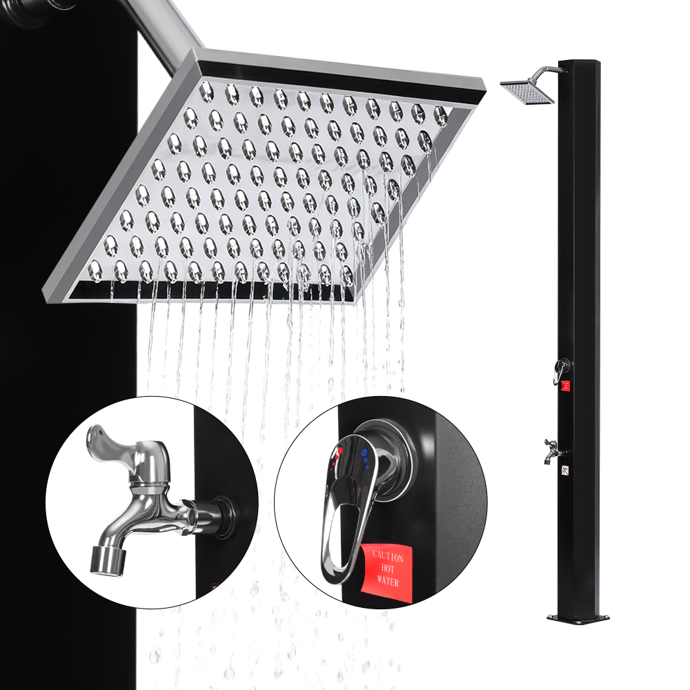 Con su tubo de ducha de tamaño generoso, esta LY35L05-SS Ducha Solar Exterior Anti-Acumulación de Agua calienta eficientemente el agua hasta 60 °C bajo plena luz del sol, eliminando la necesidad de electricidad y haciéndola ideal para un uso sostenible en exteriores. Simplemente conecte una manguera de jardín estándar para llenar el tubo de la ducha y toda la familia podrá disfrutar de una experiencia de ducha refrescante y cómoda en el jardín, junto a la piscina o incluso en un campamento. Una bandeja de metal cuidadosamente integrada proporciona un lugar conveniente para mantener el gel de ducha y otros elementos esenciales al alcance de la mano, mientras que los orificios de drenaje en la base garantizan un flujo de agua suave y evitan que se acumulen. Además, la ducha está diseñada para un fácil desmontaje, lo que permite guardarla de forma compacta cuando no está en uso, lo que la hace especialmente práctica para el almacenamiento y transporte fuera de temporada.