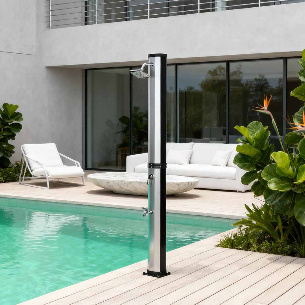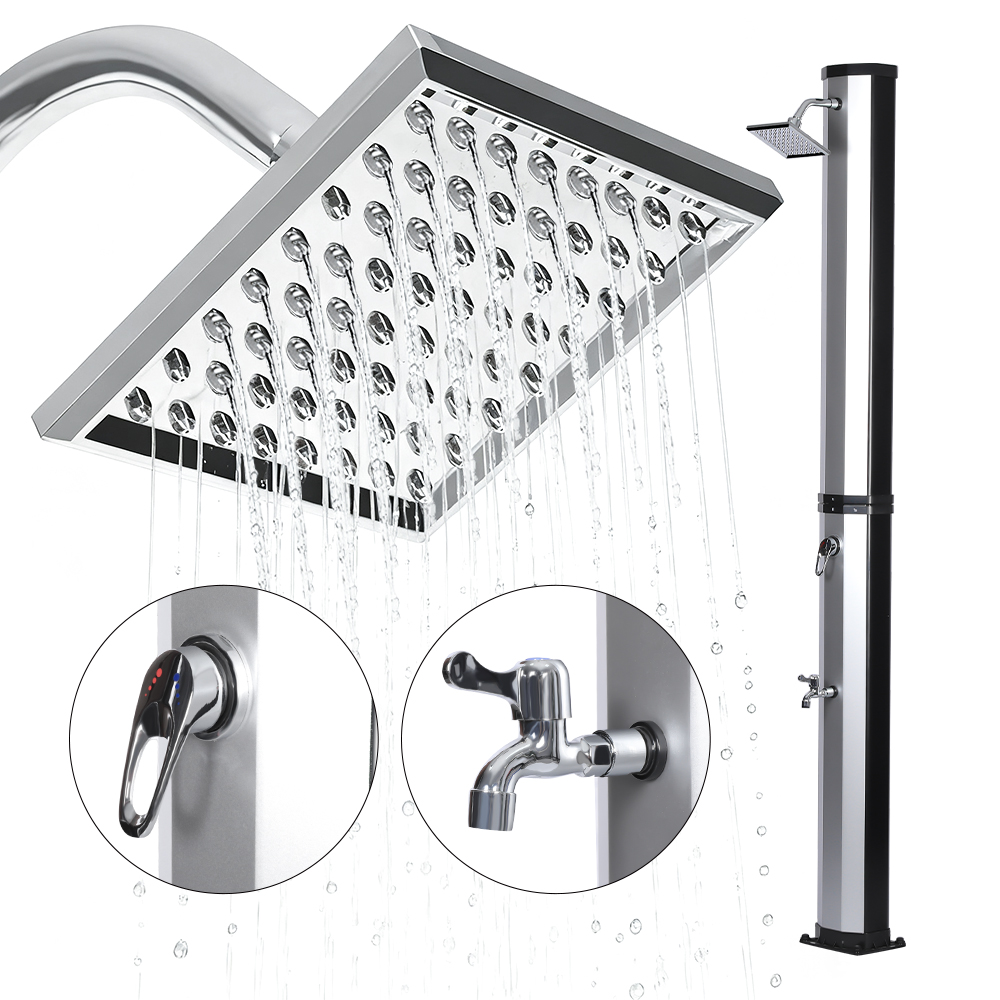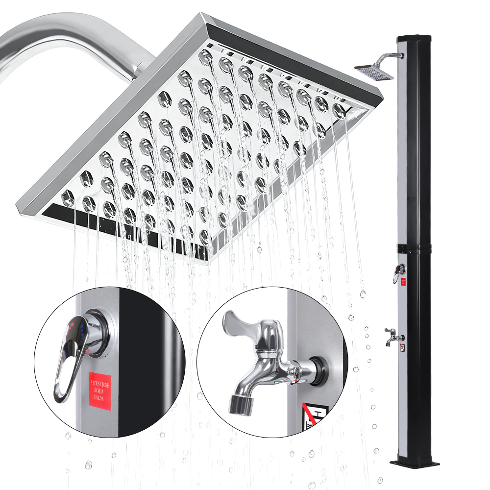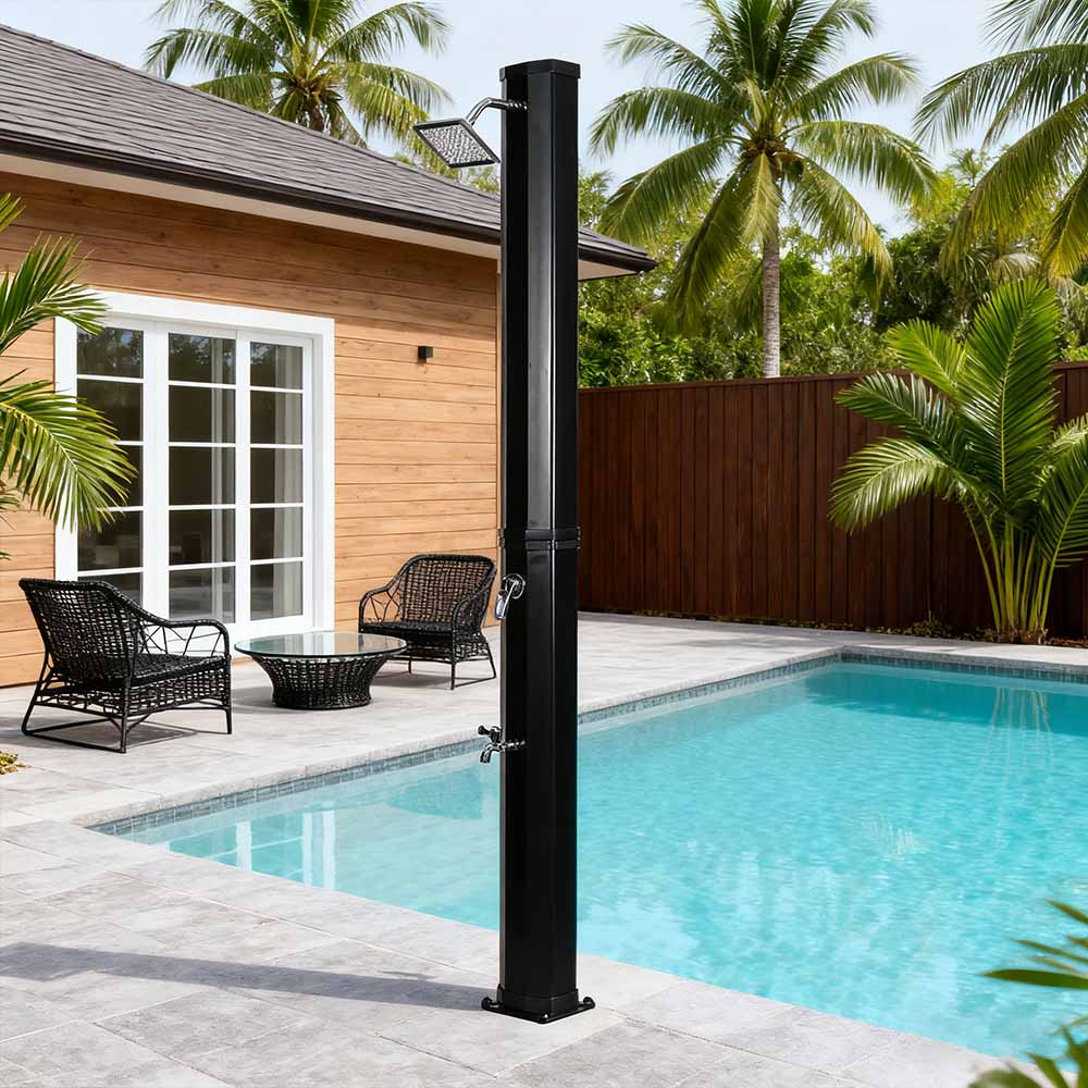 Esta LY35L08 Ducha solar flexible y sencilla está diseñada tanto para brindar versatilidad como practicidad. Su amplio cabezal de ducha de lluvia no solo gira 360° para un efecto de enfriamiento integral, sino que también permite un ajuste flexible del flujo de agua para adaptarse a sus preferencias, creando una experiencia de ducha relajante similar a la de una cascada natural. La instalación es sencilla y el práctico grifo accionado con el pie permite enjuagar fácilmente las manchas para refrescarse aún más cuando no se requiere una ducha de cuerpo completo. Además, la unidad de ducha cuenta con una conexión de manguera de jardín estándar para un llenado rápido y sencillo, y un tapón de drenaje permite vaciar fácilmente la tubería de la ducha antes del invierno, lo que garantiza seguridad y confiabilidad cuando no está en uso y extiende su vida útil.