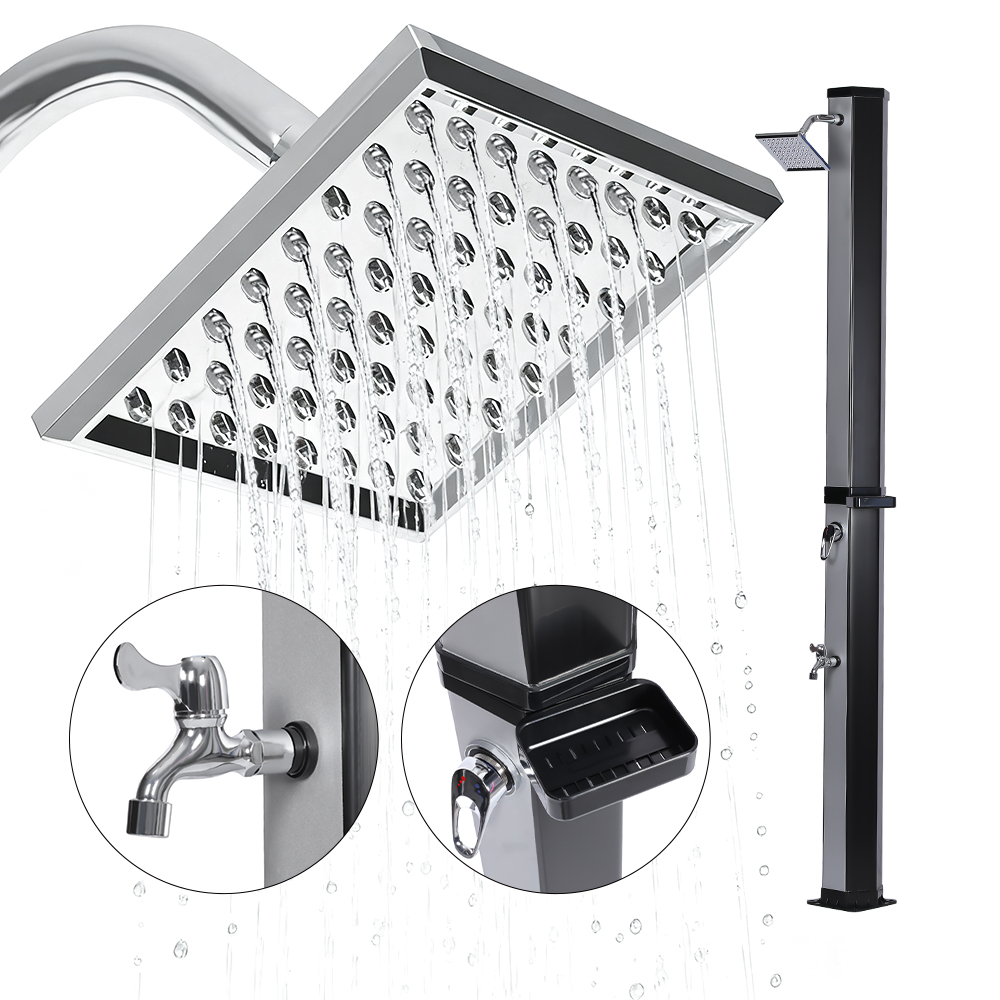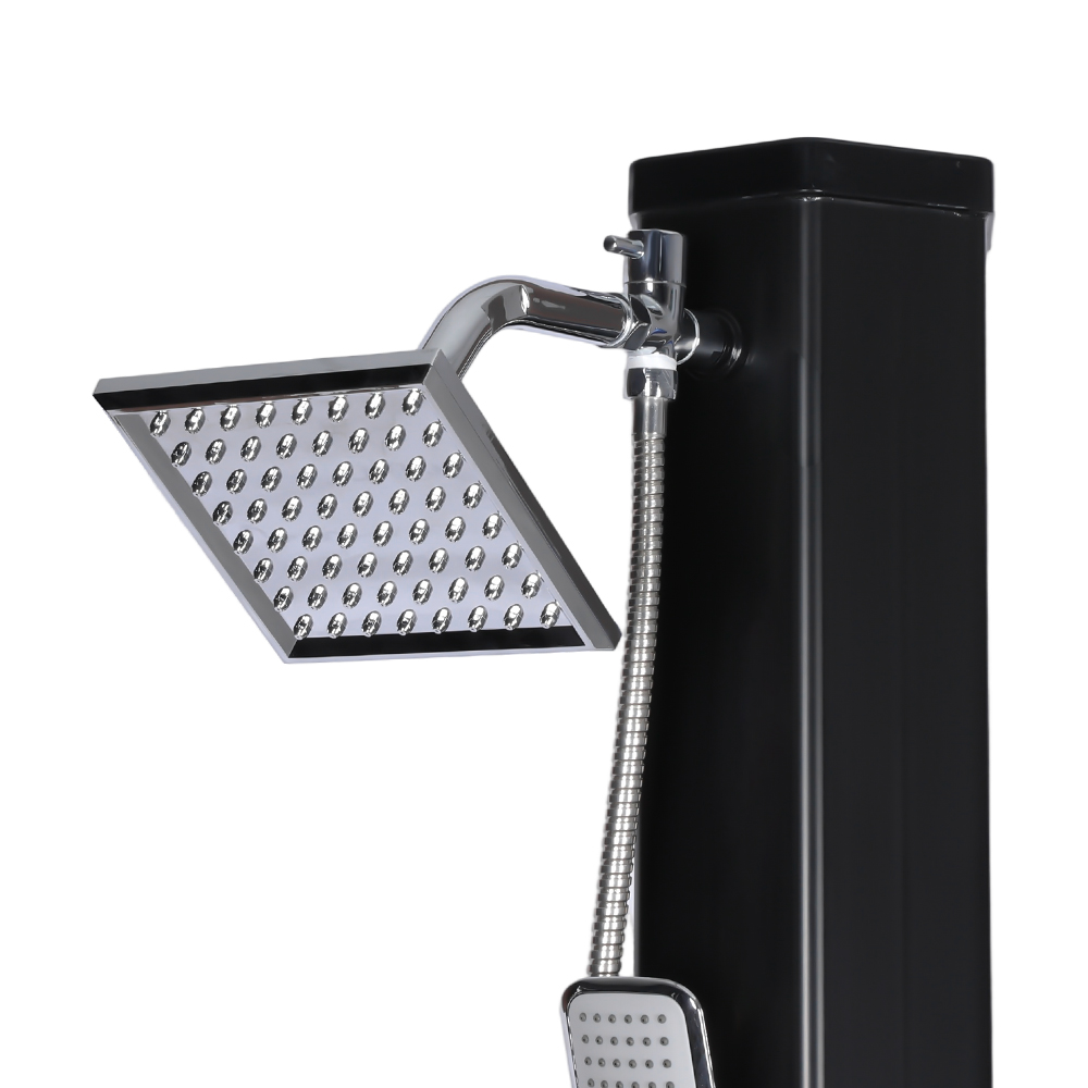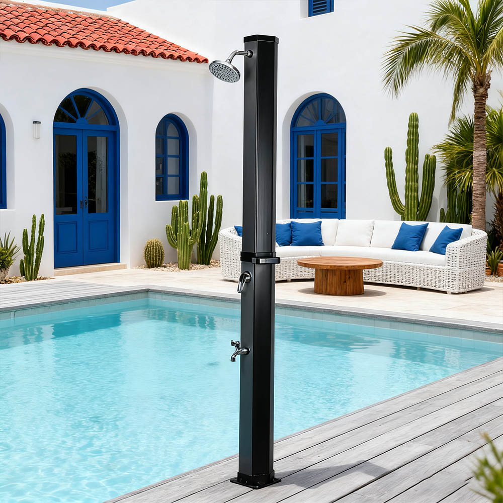 Esta LY35L09 Ducha solar para exteriores fácil de transportar está diseñada para un uso versátil y ofrece una cómoda experiencia de ducha caliente en el jardín, junto a la piscina o mientras acampa. No depende de ninguna fuente de energía externa y disfruta de la comodidad del calentamiento natural de la luz solar. Cuenta con una conexión de manguera de jardín estándar para un llenado rápido y sencillo, y un tapón de drenaje permite vaciar fácilmente la tubería de la ducha antes del invierno, evitando daños por agua acumulada. Su diseño desmontable permite un desmontaje rápido y un almacenamiento compacto, lo que lo hace ideal para un almacenamiento que ahorra espacio cuando no está en uso, además de ser fácil de transportar, lo que le permite disfrutar de la comodidad de una ducha al aire libre en cualquier momento y en cualquier lugar.